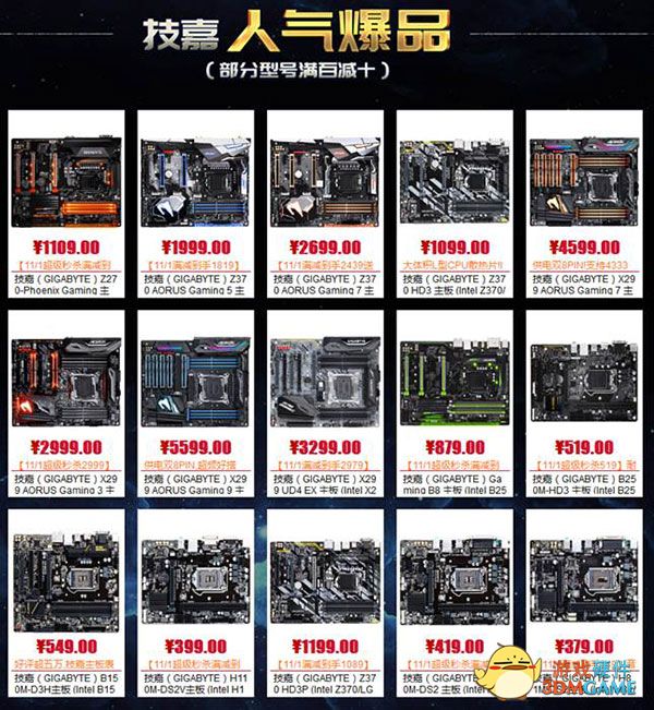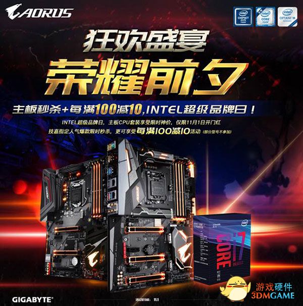 玩转双·11,好物超值购!技嘉双·11省钱秘籍第二波震撼来袭!11月1日,技嘉京东开启“荣耀前夕-Intel超级品牌日”活动。在此期间,技嘉主板CPU套装享受限时神价,指定人气爆款限时秒杀,部分型号还可享每满100元减10元优惠!机不可失,有意攒机的朋友赶紧戳下方链接,直达狂欢盛宴,尽享激情购物乐趣!