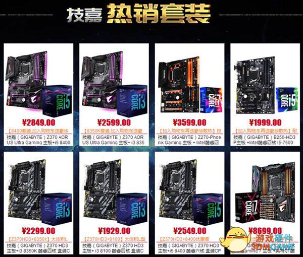 对于“颜值控”来说,Z270-Phoenix Gaming个性化“凤凰版”技嘉主板加i7-7700K处理器套装是优先之选;而热于尝鲜第八代酷睿处理器的用户则可以考虑Z370 AORUS Ultra Gaming主板和i5-8400处理器套装。