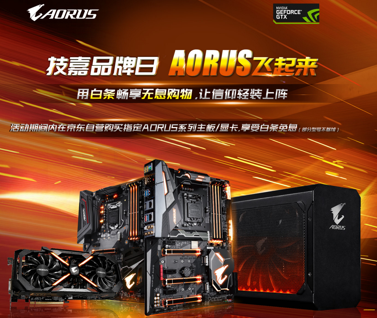 11月8日,技嘉AORUS品牌日活动全面开启!在此期间于京东自营购买指定AORUS系列主板及显卡等产品,可享受3至6期不等的白条免息;购买技嘉指定主板享受领券立减活动,满99减50、满999减100、满1999减200、满10000减1111。此外,在当日中午12点的技嘉AORUS品牌日直播中,还将送出Z370 AORUS Ultra Gaming主板和AORUS相关周边礼品(背包、手机扣、鼠标垫等)。如此空前超值的促销活动就在眼前,机不可失,赶紧戳下方链接参与吧!
