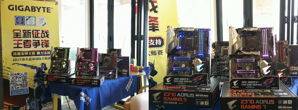作为《街头篮球》多年的合作伙伴,技嘉不仅为本次国际大师赛提供硬件平台支持,还为赛事给予场地支援,国际大师赛的比赛全部选用搭载技嘉Z370主板的电脑作为赛事用机,赛事也均落地于全国的技嘉网吧。此外,技嘉还给大家带来了许多前沿主板产品,并在现场开启了福利派送模式。来到现场的玩家,既可以体验到技嘉Z370系列产品的最新技术,又可抽取《街头篮球》游戏礼包、AORUS U盘等更多好礼,享受完美的观赛体验,现场观众都感叹不虚此行。