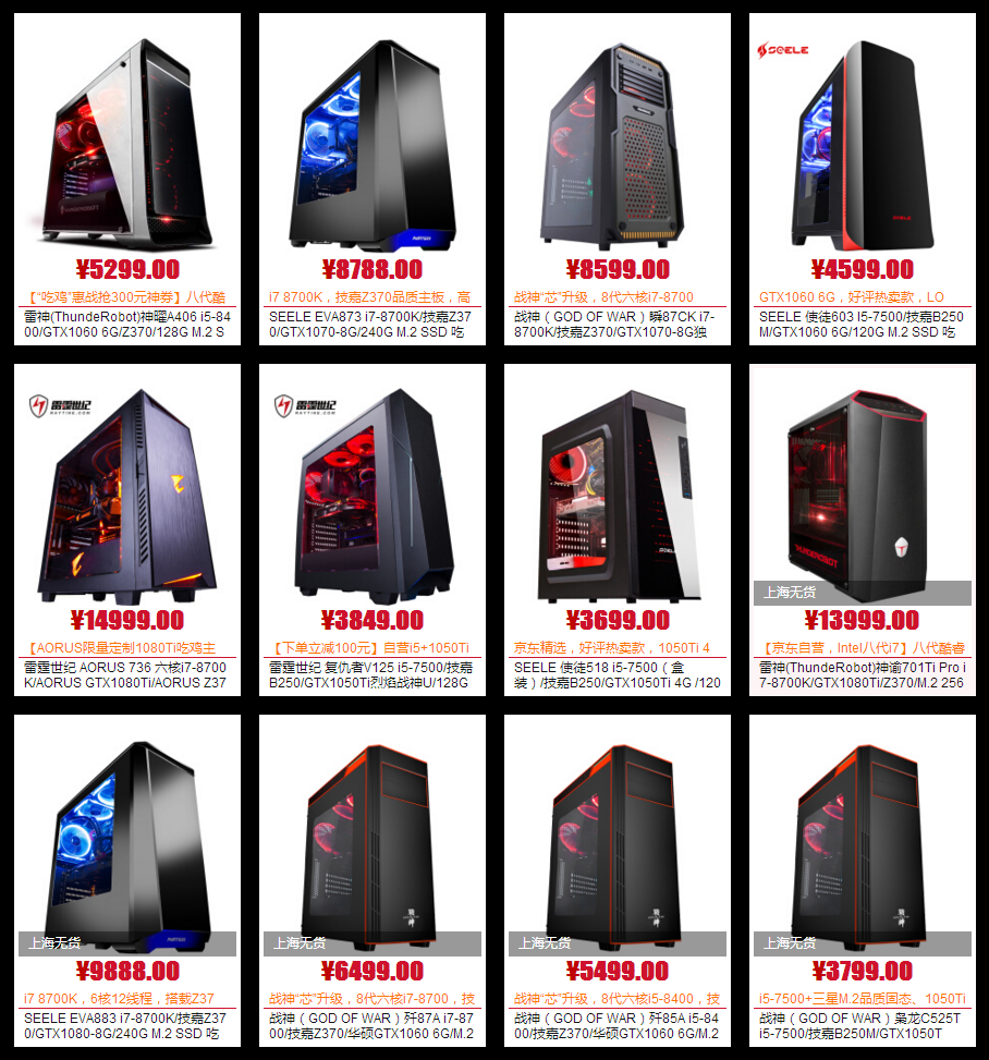 如果你是一名新手DIY玩家或者为了尽早拥有专属战机,那么此区的整机便是为你准备。“雷神神曜A406”是一台八代酷睿游戏主机,非常适合广大“吃鸡”玩家。它搭载第八代酷睿六核i5-8400处理器、Z370 HD3实用大板及热门GTX 1060显卡,加以高速M.2 SSD,畅玩“吃鸡”不丢帧!如果你是AORUS信仰粉丝,那么千万不要错过“雷霆世纪 AORUS 736”这台高端游戏主机,你的限量定制水冷PC。