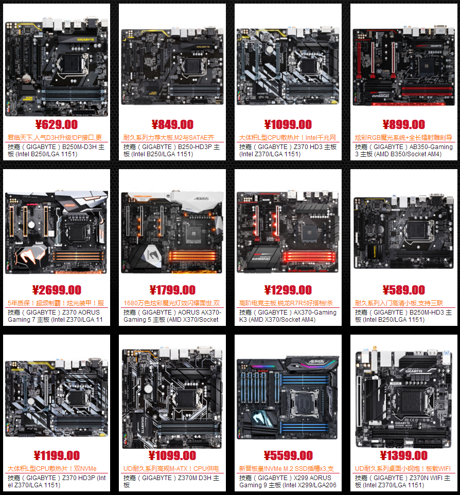 对于许多不超频的大众游戏玩家来说,强烈推荐B250M-D3H主板。它是200系M-ATX主板中的“人气之王”,秉承超耐久主板扎实的做工用料,采用大体积L型CPU散热片、高品质固态电容,时下热门的M.2接口、DP接口同样配备,综合性能强大,参与本次秒杀满减活动后仅需499元即可入手,极具购买价值。若你是拥有充足预算的高端游戏玩家或者硬件发烧友,建议选择X299 AORUS Gaming 9,一款豪取多项世界超频纪录的主板,入手Intel酷睿X系列处理器的朋友值得考虑。当然,还有其他多款主板参与活动,无论是AMD用户或者Intel玩家,无论喜欢小钢炮平台还是“颜值控”,你都可以在这选到这心仪的主板。