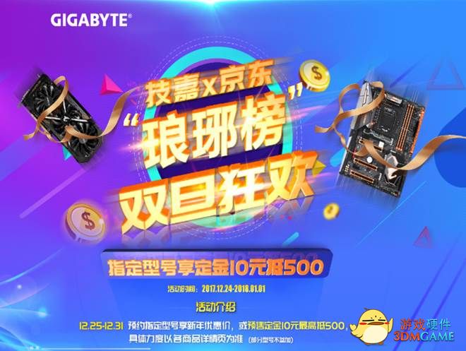 圣诞刚过,元旦亦在眼前,岁末年终购物季,正是购置好物的好时机。喜欢DIY硬件与游戏的玩家注意了,2017年12月24日至2018年1月1日,技嘉联合京东开启“琅琊榜”双旦狂欢活动!12月25日至12月31日期间技嘉京东官方旗舰店内2017年热销的多款主板、显卡、板U套装等产品享定金膨胀或新年预售价优惠。立戳下方地址,各类优秀硬件任你挑选,组建你的专属竞技利器,畅玩游戏年末嗨到底!