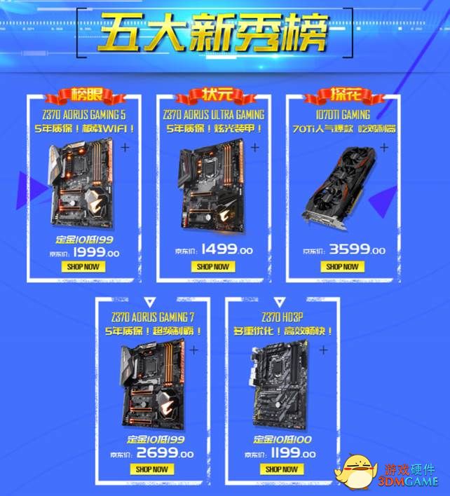 在五大新秀榜中,Z370 AORUS Ultra Gaming主板荣摘“状元”。它基于Z370芯片组设计,采用加强型7相供电保证,集双M.2接口、Intel千兆网卡、Realtek旗舰级音频芯片、1670万色炫彩魔光系统等特色技术于一身,还可免费注册铂金会员享五年质保等服务,限时优惠非常值得选购!