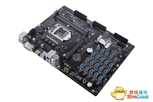 H370 Mining Master的一切都针对挖矿来进行优化,不必要的东西全都移除来节省成本,只留下辅助显卡运作所必需的功能。上一代配置了18个PCIe x1插槽,但华硕发现大部份人的使用情境,都是先将PCIe x1用转接卡换成通过USB 3.0的线材来连接显卡,所以这代的20个连接口,华硕直接就把转接卡的功能做到了主机板上,让连接更牢固。不过这只是用USB 3.0的接头和线而已,本质上还是PCIe,所以与USB 3.0是不兼容的喔。