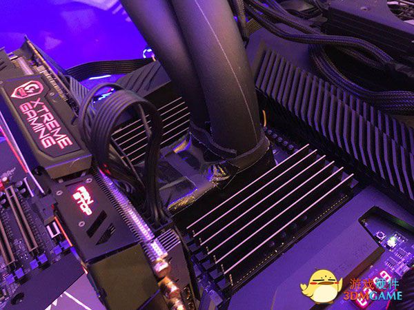 这区域展示的是AORUS水冷主板——Z390 AORUS Xtreme Waterforce!