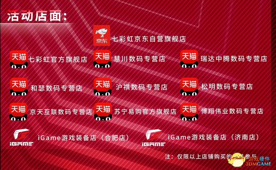 共有七彩虹京东自营旗舰店等10个线上店铺,以及两家线下iGame游戏装备店支持此次活动,在下图中这些店铺购买的产品均可参与超级品牌日首波“以旧换新”福利,不在此列的将无法参与。升级换代正当时!传承曾经与自己朝夕相伴的“爱将”之魂,焕发视界新生吧!5月7日,iGame超级品牌日等你来玩,活动专题链接: https://qchshop.jd.com/