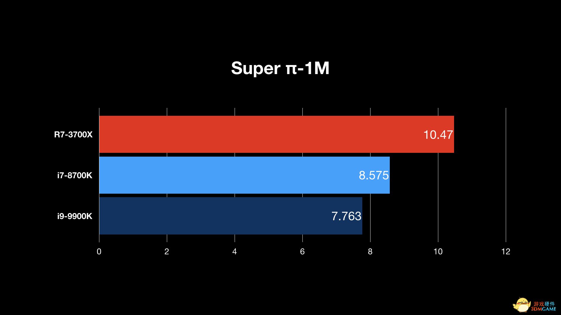 搭建完成后我们首先在默认状态下进行了一些简单的测试。锐龙3700X采用了全新的Zen2架构,终于在单核性能上追了上来,单从圆周率的测试成绩上来看,和Intel这边还是存在一定差距。