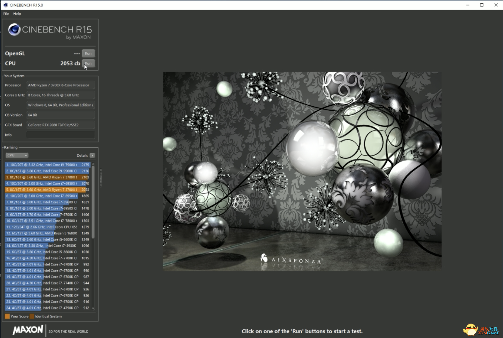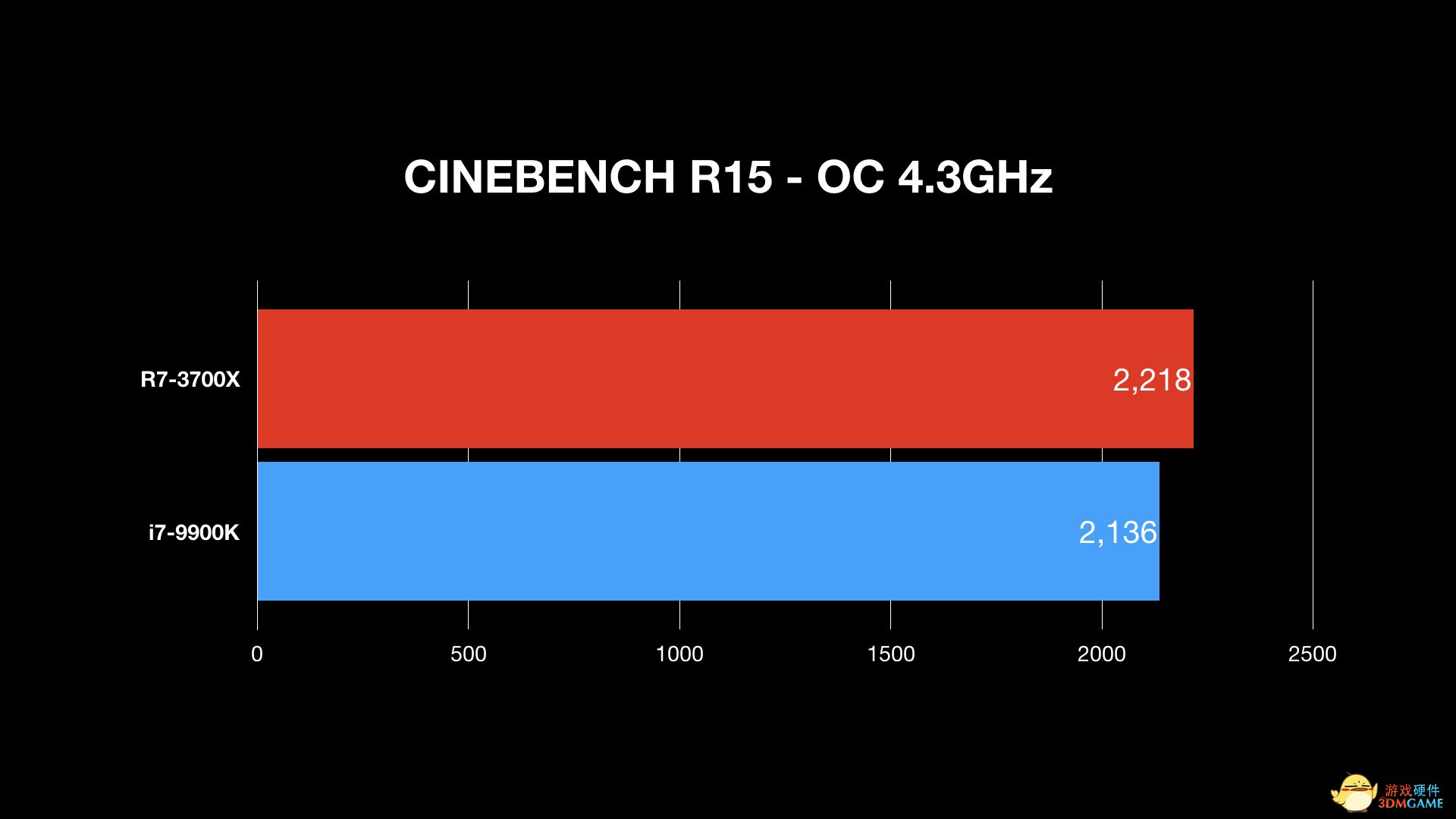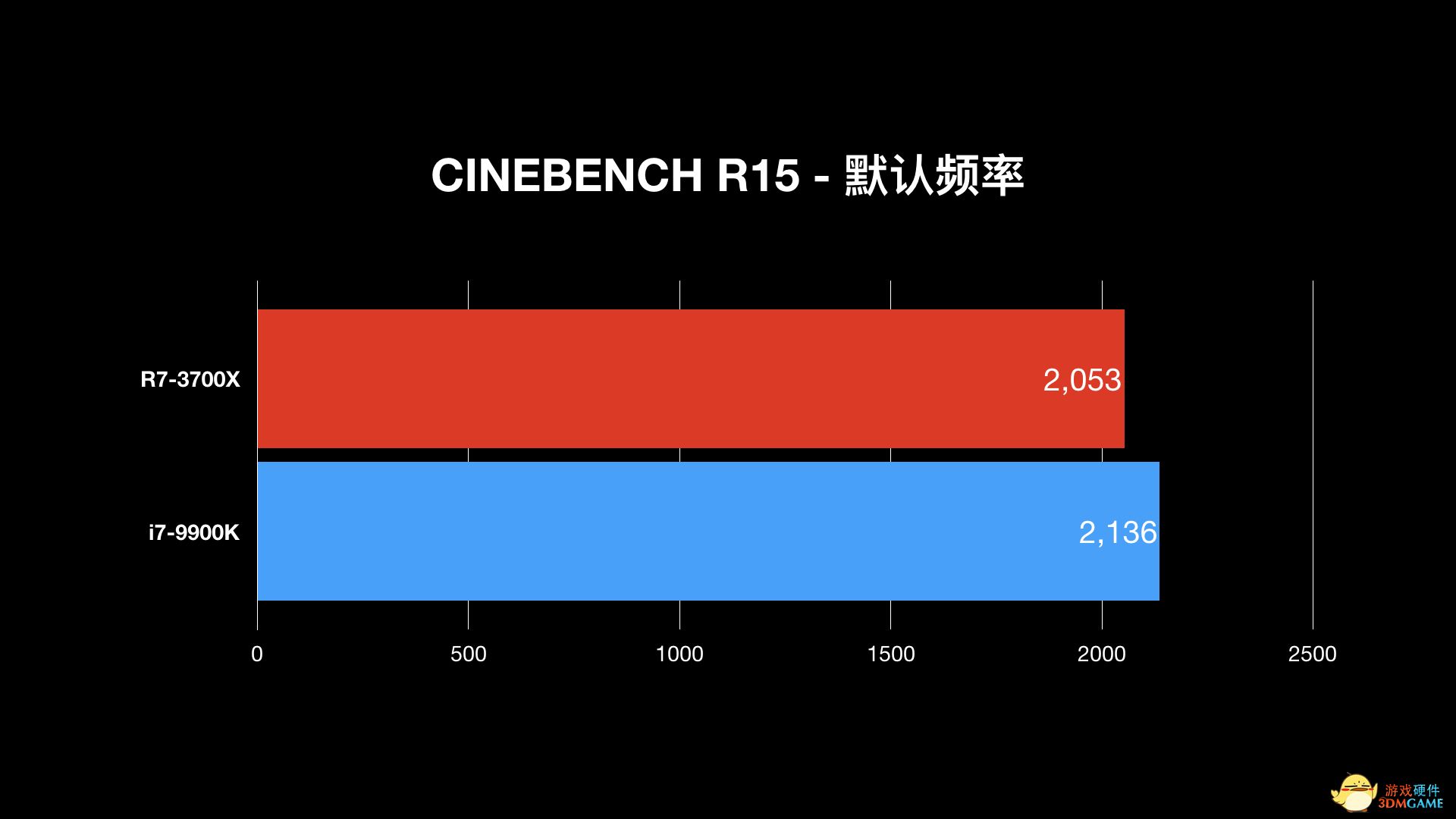 不过得益于8核16线程的设计,CINEBENCH R15中默认频率下已经几乎追平了i9-9900K,考虑到他们两个定价差距的话,这是一个非常喜人的成绩。