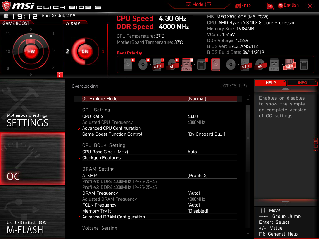 我们使用微星X570 ACE主板搭建了一套测试平台,CPU使用的是3700X,内存为影驰名人堂OC LAB MASTER频率为4000MHz,显卡则是微星的RTX 2080 Ti万图师。