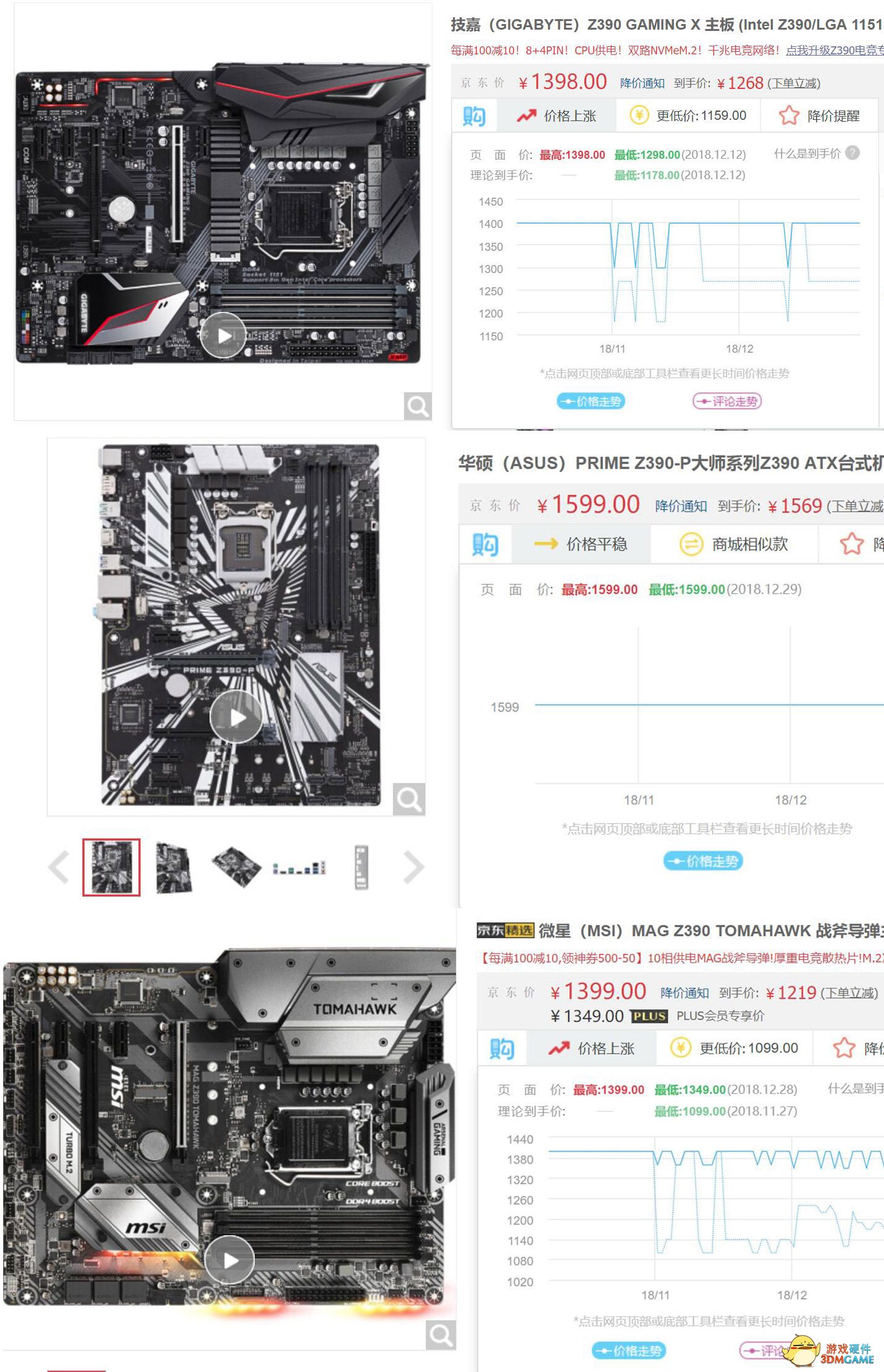 首先在入门级主板的选择上我们共使用了技嘉Z390 Gaming X、华硕PRIME Z390-P以及微星Z390 Tomahawk三款,而这三款主板价位都是1400-1600级别,属于玩家装机时的主流选择,接下来我们分别介绍这三款主板。