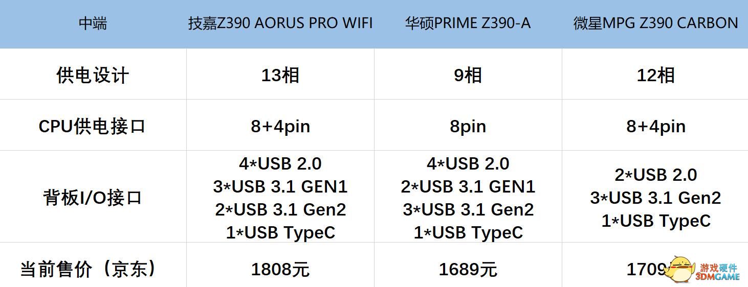 接下来介绍的是三款中端级别的主板,这一次主板的价位到了1800-2000元,参与测试的三款主板分别是技嘉Z390 AORUS PRO WIFI、华硕PRIME Z390-A、微星Z390 CARBON。