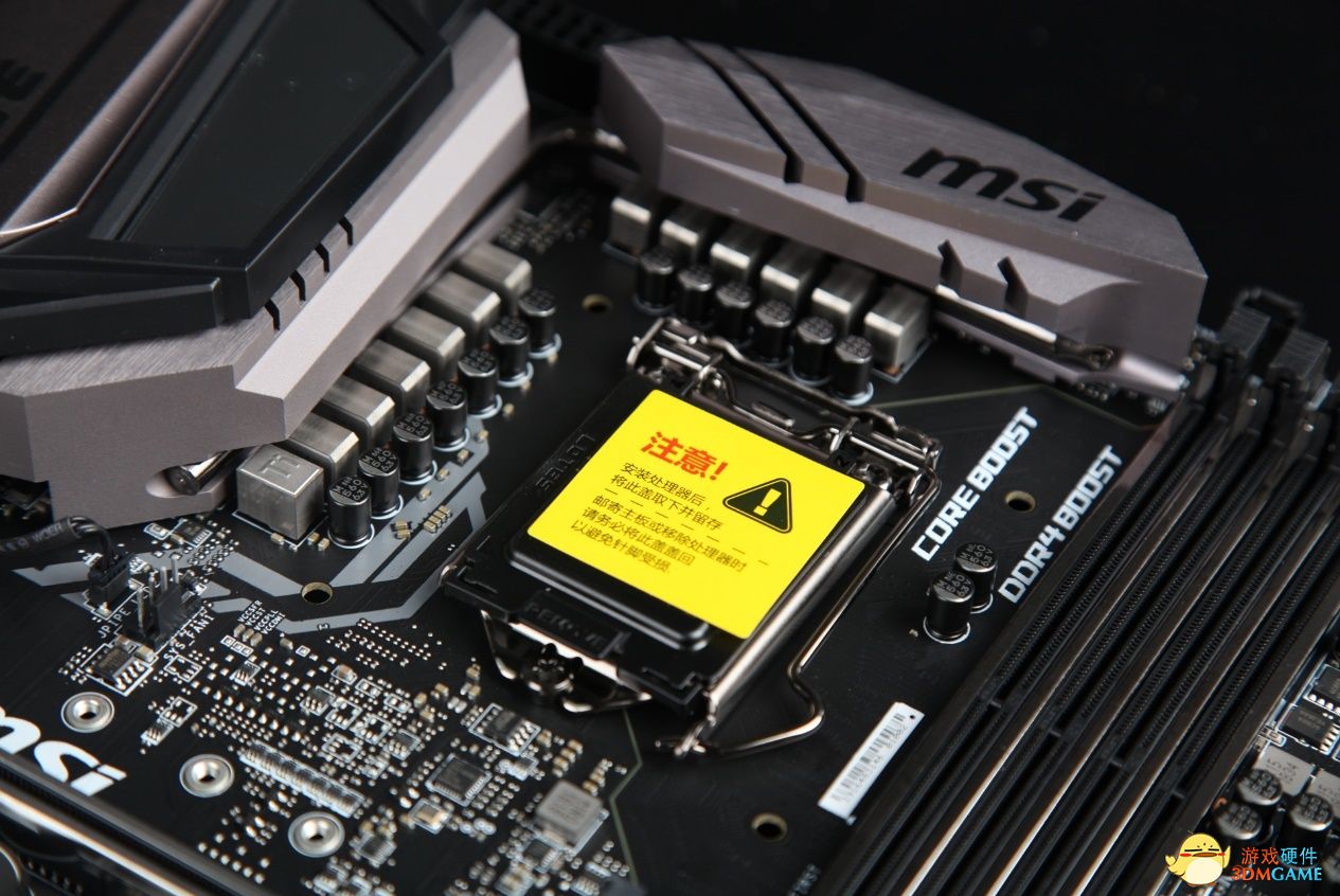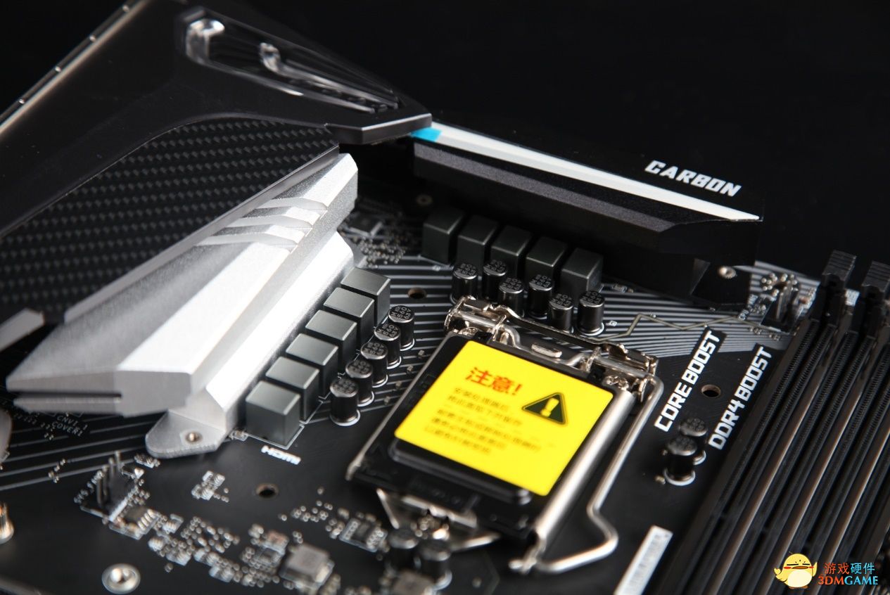 微星Z390 CARBON在MOSFET区域配置了一黑一白两个金属散热片,给CPU的运行更加稳定,而装甲之上添加了一个信仰灯,外观设计更加像是超跑前灯的样子,通过微星Mystic Light灯效系统可以让它展现不同的效果。