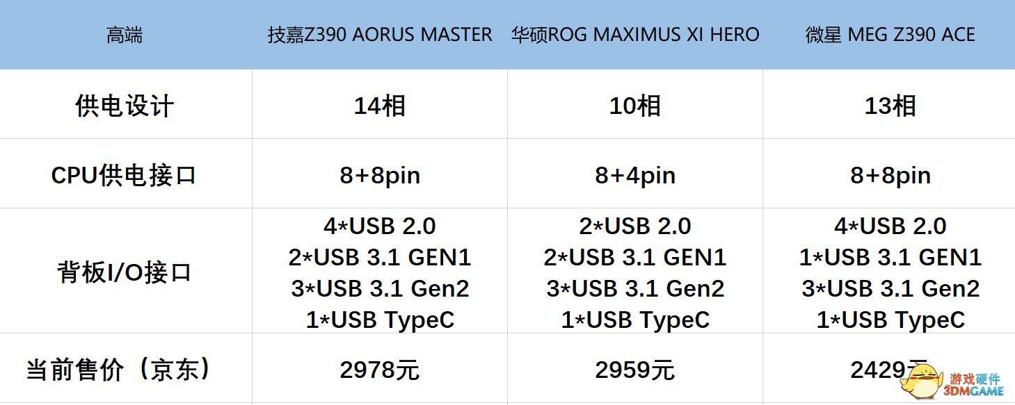 接下来就到了各家高端系列的介绍部分了,这里我们使用的是技嘉Z390 AORUS MASTER主板,华硕部分为ROG M11H主板,微星为Z390 ACE主板;虽然技嘉还有更高端的Z390 AORUS XTREME主板;微星还有Z390 GODLIKE主板,华硕还有M11F、M11G、M11E等主板,但考虑到价格基本盘已经超过5000,除非对硬件或性能有非常极致要求的玩家,不然一般用户很难选择到如此高端的主板,所以在这次测试中,笔者没有将这几块价格太高的主板纳入本次测试。