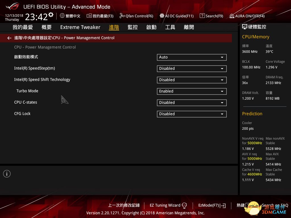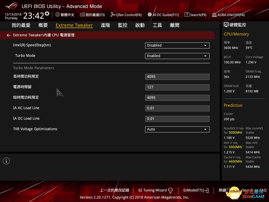 大体设置上同ROG一致,同步所有核心5GHz,AVX设置为0,缓存频率4.6GHz。