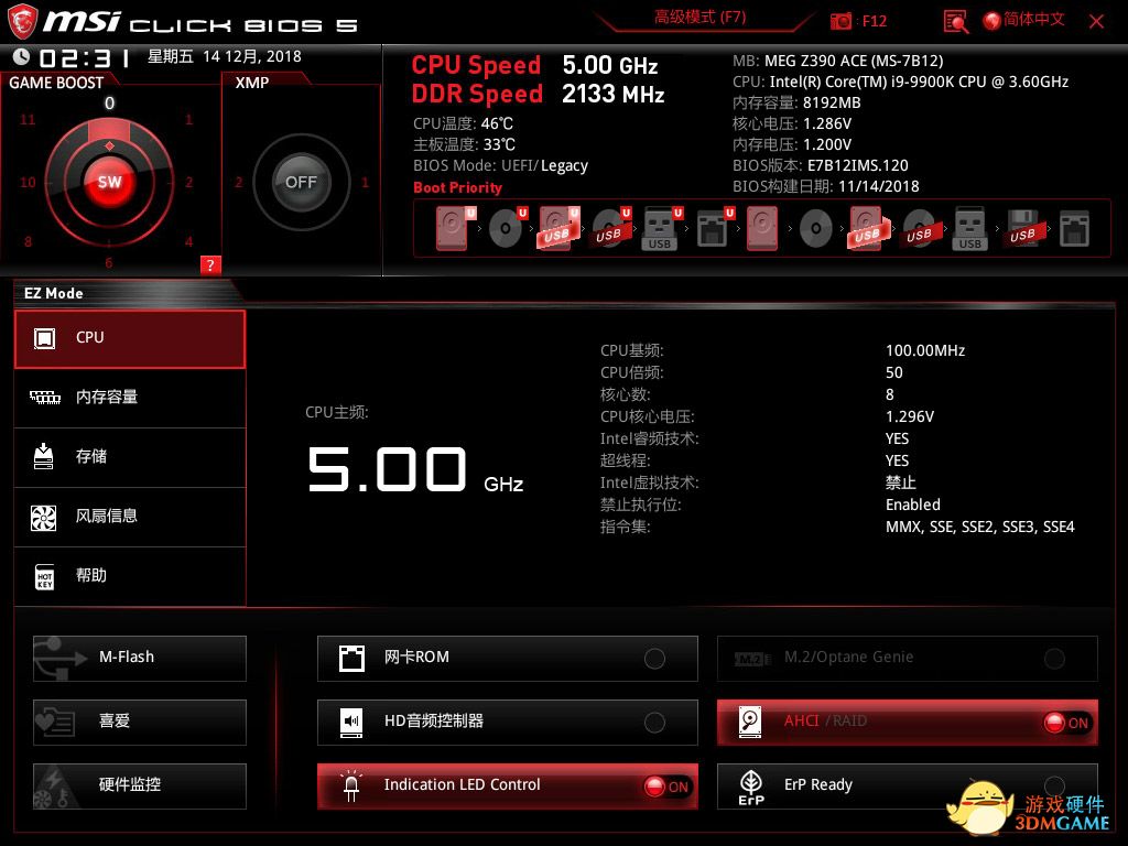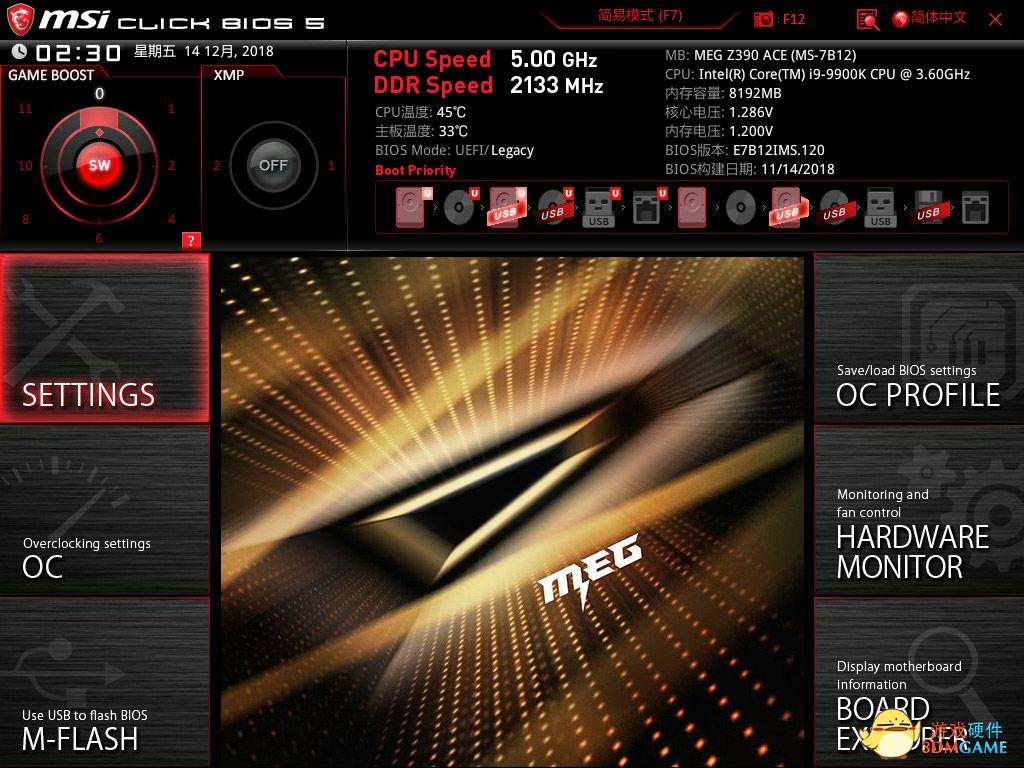 微星的BIOS设置起来也很直观,简易模式下处理器、主板、内存的情况都在界面中一一呈现。