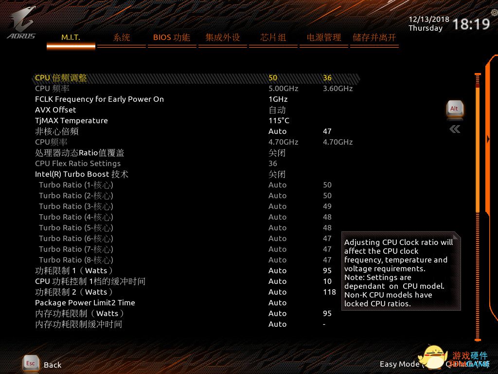 超频部分,一样调整处理器倍频50,关闭XMP,关闭Intel Turbo boost等功能。