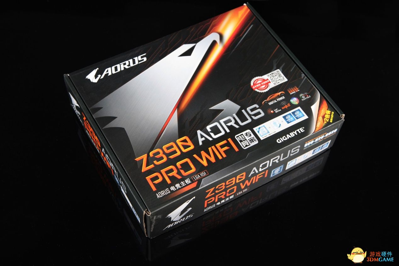 首先要介绍的是来自技嘉Z390 AORUS PRO WIFI主板,价位提升到1800元以后,我们终于看到了冠以AORUS大名的电竞主板。