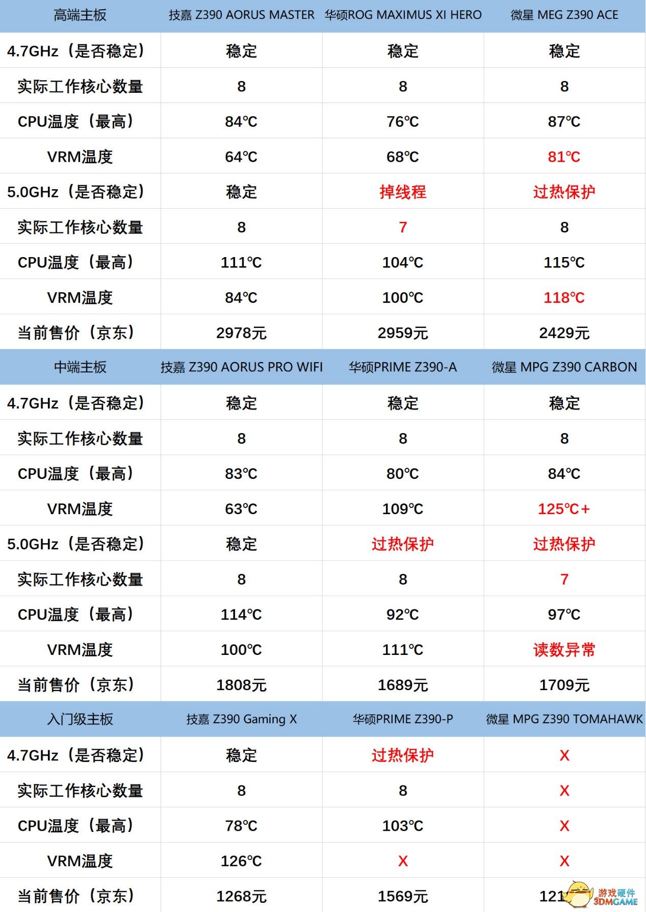所以高端主板的5GHz烤机结论呼之欲出,唯一完成烤机的Z390 AORUS MASTER自然是冠军了。