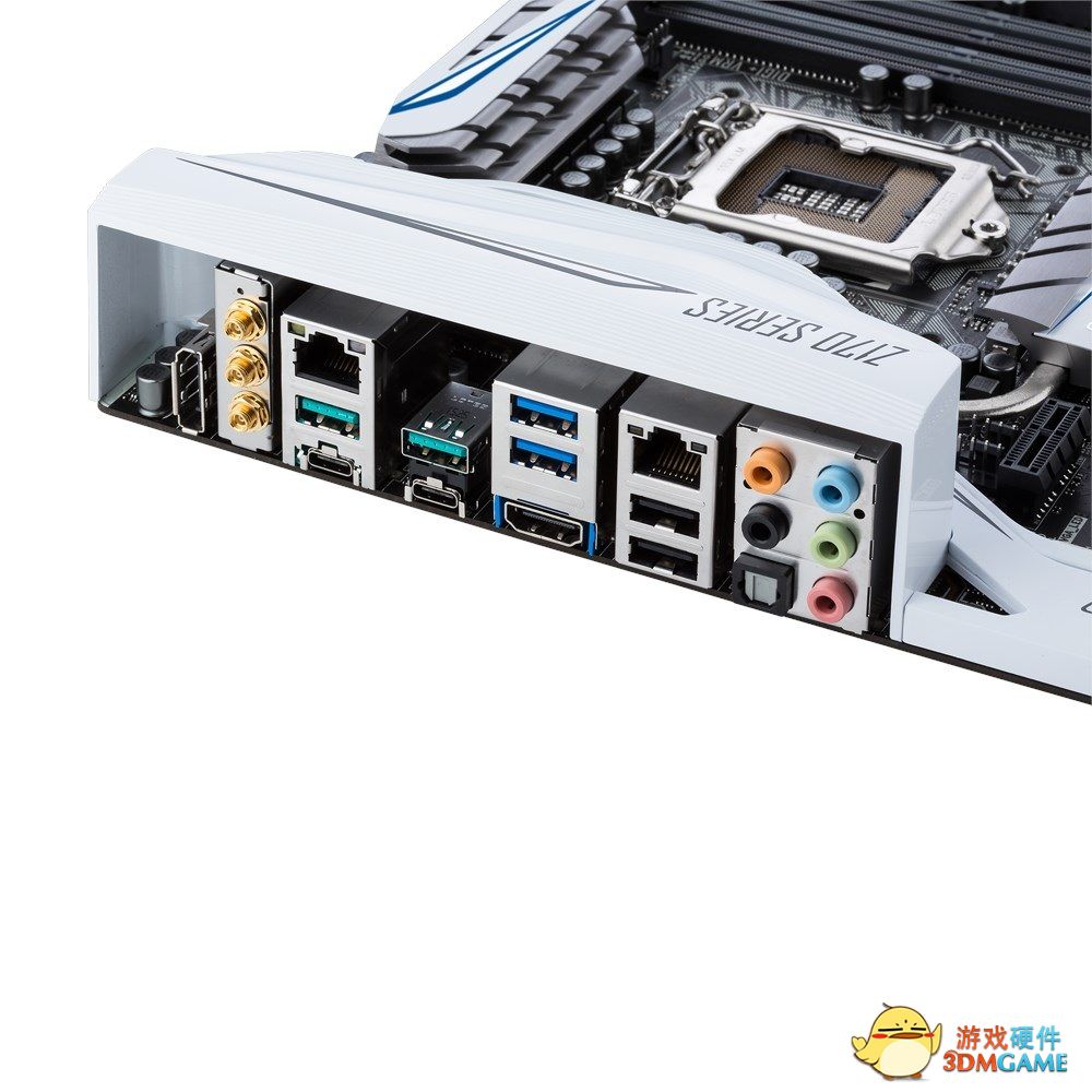 在这张主板上,我们可以见到USB 3.1 Type-C以及雷电Thunderbolt 3。除 USB 3.1 Type-C 与 Thunderbolt 3 外,主板 I/O 还包含 USB 3.1 Type-A、USB 3.0、USB 2.0、HDMI、DisplayPort、802.11ac Wi-Fi、Intel I219V与I211-AT 网络等配置;音频芯片则是螃蟹Realtek ALC1150。