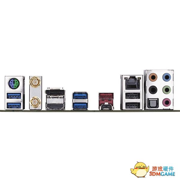 背部接口部分配置了一个PS/2键鼠接口,5个USB 3.0 Type-A接口和一个USB Type-C接口,一组DVI-D/HDMI视频接口,一个网卡接口一组高清音频接口。