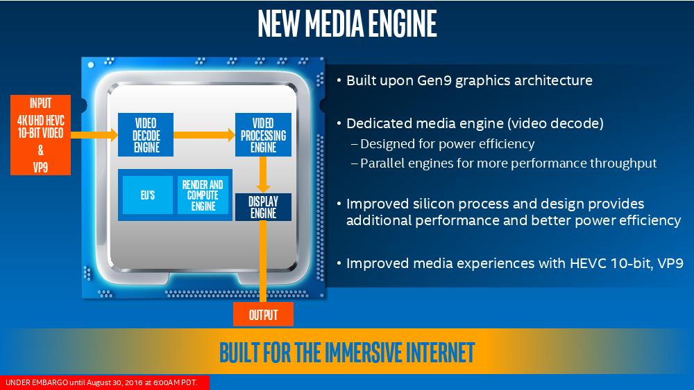 另一个重点则是在影音娱乐的性能提升,主打架构中整合先进格式的译码加速,同时针对HEVC 10bit、VP9大幅提升效率,也因此使视频播放更省电,同时也支持时下流行的多图像串流与4K 360影片格式。
