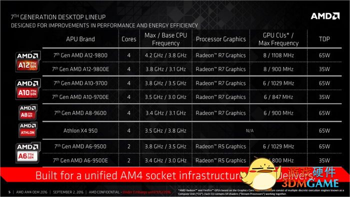 最后是AMD第七代APU家族型号及规格,也是之前没详细公布的:
