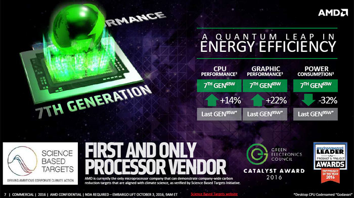 2.为了达到使用者与日俱增的运算与图形需求,新型AMD PRO处理器也提供了比第六代AMD PRO处理器高14%的运算性能及22%的图形性能,节电性能也比前代多31%。