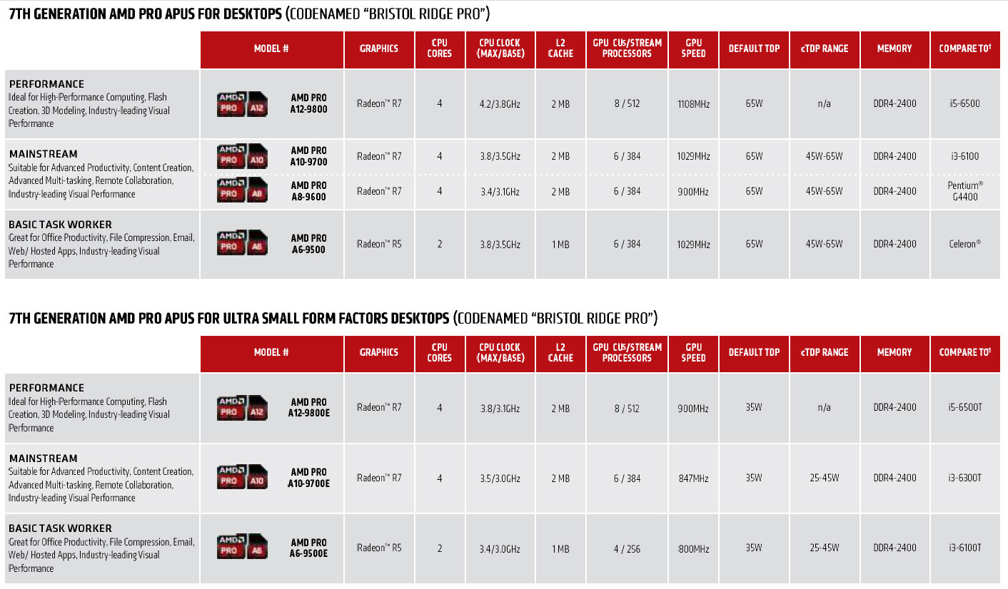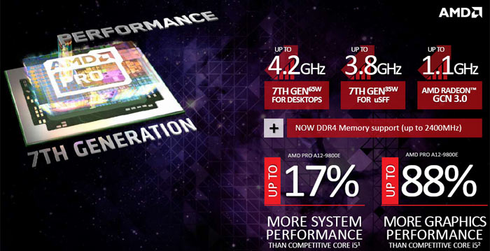 还记得之前笔者曾说过AMD要推出新的APU吗?AMD在Canalys Channels Forum上宣布了首次采用第七代AMD PRO APU(之前代号为Bristol Ridge PRO),AMD PRO APU可以提供大量的运算及图形性能,更拥有更加强力的节电性能,是专门为商务人士所设计的,同时也为保护顾客的IT投资行为而提供既安全又稳定的平台。