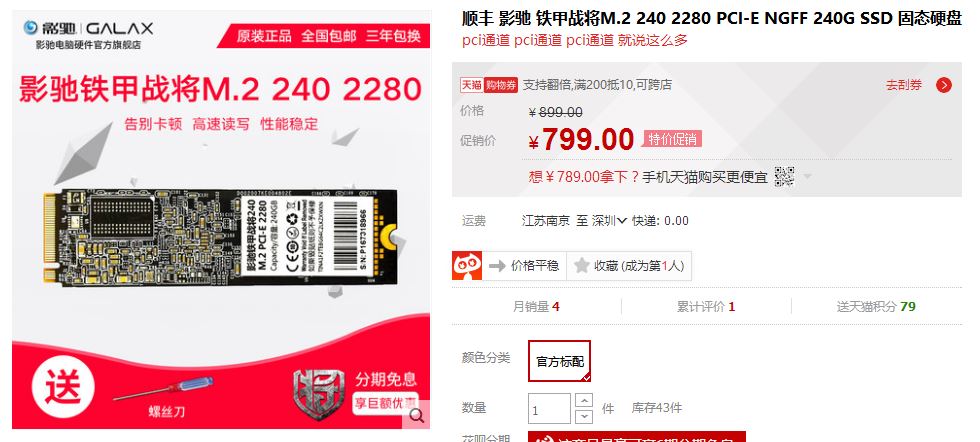 最后,你们期待已久的影驰铁甲战将NVMe M.2 PCI-E SSD已正式发售,感兴趣的用户不妨关注下哦。