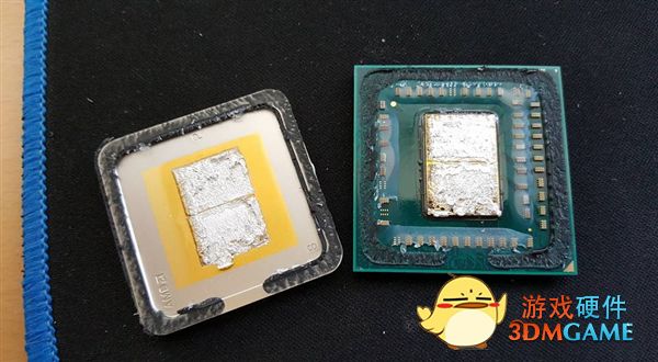 拿掉散热顶盖后,可以看到Bristol Ridge APU还是很良心的,核心上覆盖了厚厚的高级散热材料,不过具体成分暂时不详,可能是钎焊也可能是液态金属材质。
