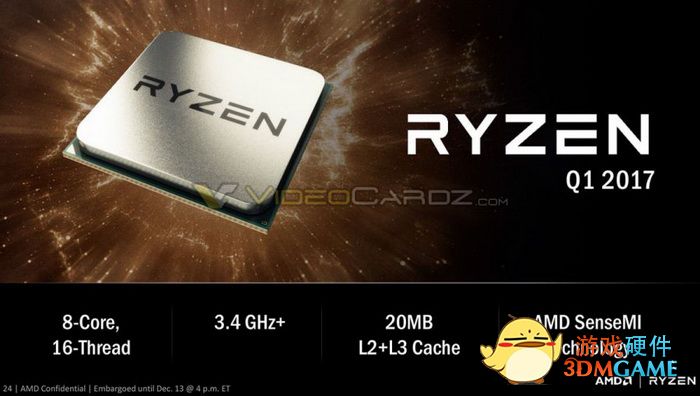 AMD这两天爆料有点猛,刚刚曝光了新一代Vega显卡,今天还会有针对Zen处理器的公开活动——新地平线,现在正在进行中。AMD的保密工作看起来不太好,制作精美的PPT已经被曝光在网上,首款Zen架构桌面处理器将命名为Ryzen,8核16线程,频率3.4GHz起,L2+L3缓存总计20MB,配套的AM4芯片组将支持NVMe、USB 3.1等新一代技术。