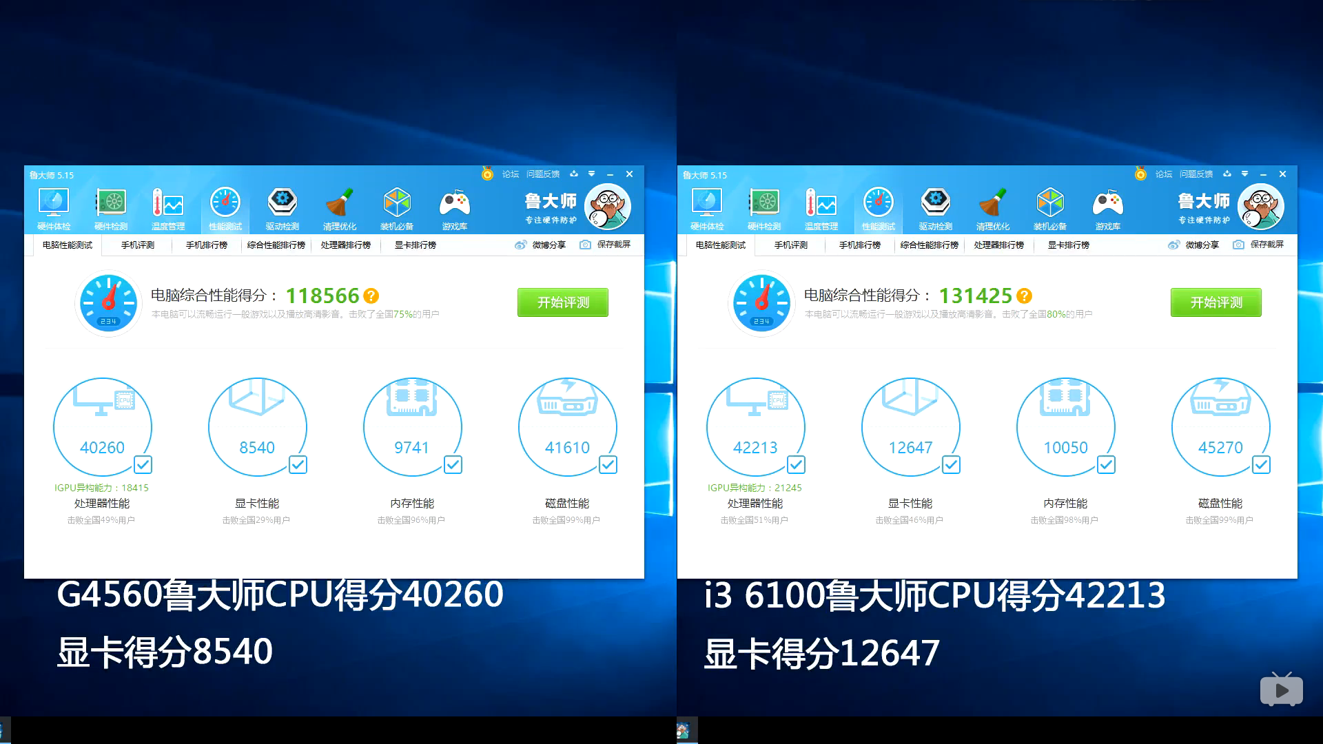 而测试的结论就是G4560相当于i3 6100 93%CPU性能/67%的GPU性能/62%的价格,看来intel这一手新奔腾直接让老i3下马了。