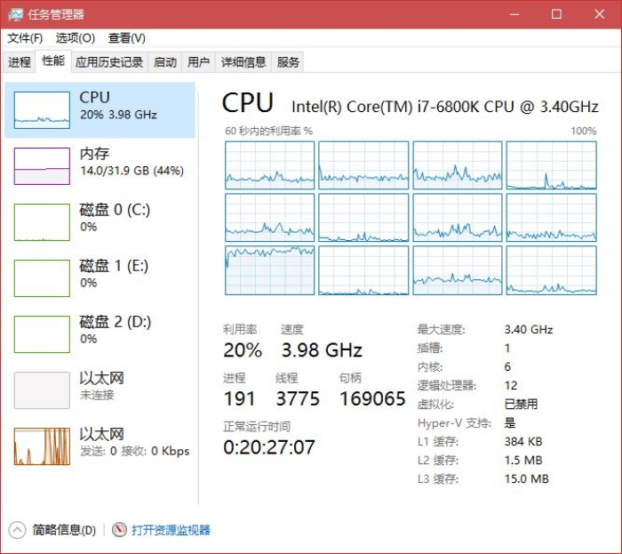 日常Photoshop软件打开二十几张JPEG照片后,内存占用率达到了14GB