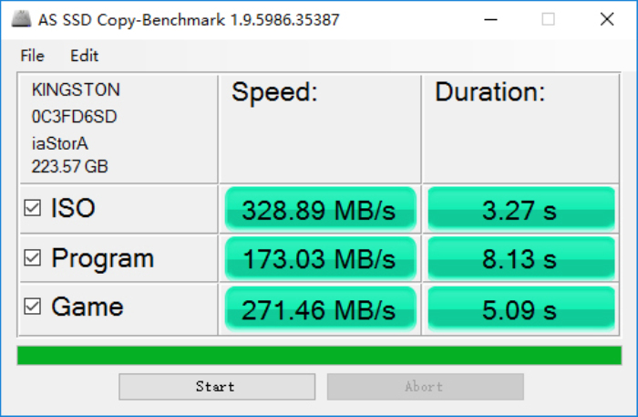 AS SSD复制模拟测试成绩也达到如今的主流水平