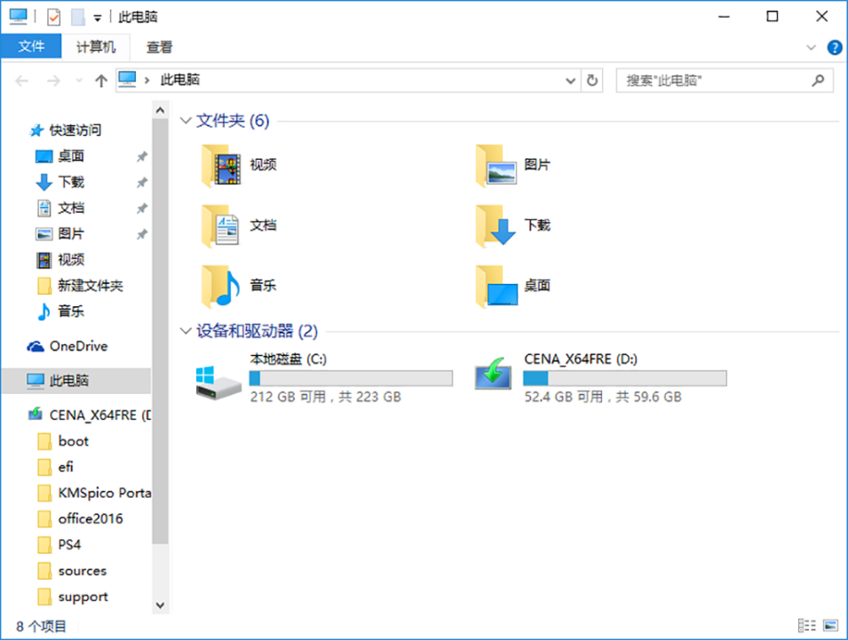 安装Win10 x64 1607周年正式版后的C盘可用空间