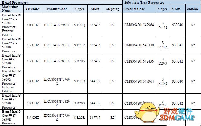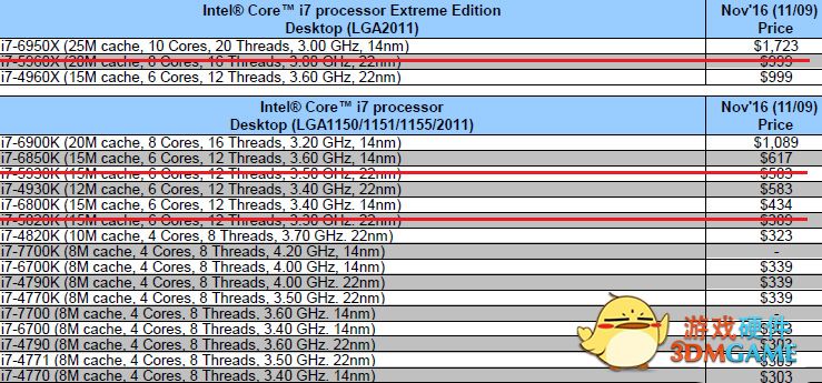 遭到除名的是Core i7-5960X, Core i7-5930K,Core i7-5820K处理器,从Intel官方信息来看,它们发布于2014年Q3,可谓立下赫赫战功。
