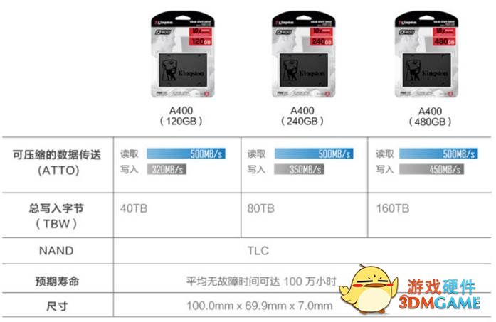 金士顿A400系列SSD产品共有120GB、240GB、480GB三款容量版本,无论是选择较小容量作为系统盘,还是寻求海量空间存储应用程序、视频、照片或其他重要文件,消费者都能找到适合自己的容量选择。