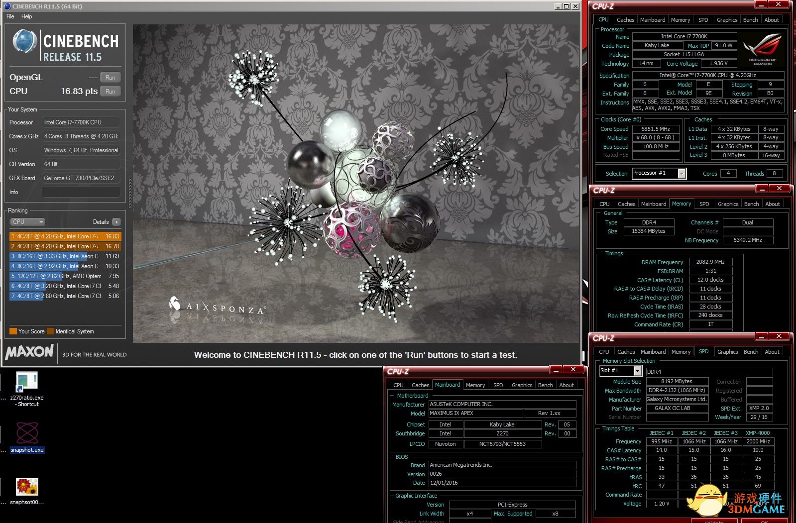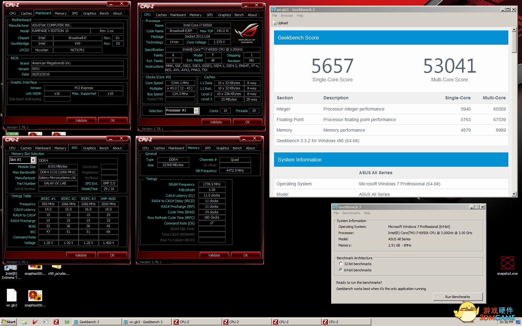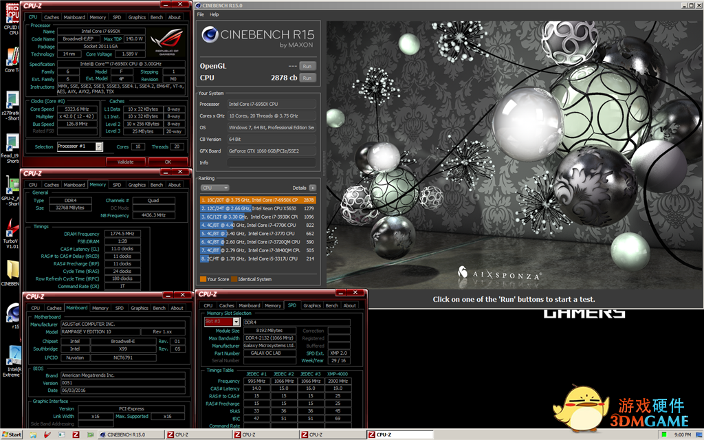采用Intel i7-6950X处理器与影驰HOF DDR4内存分别打破了Geekbench 3、GPUPI、Cinebench R11 和 Cinebench的世界纪录!