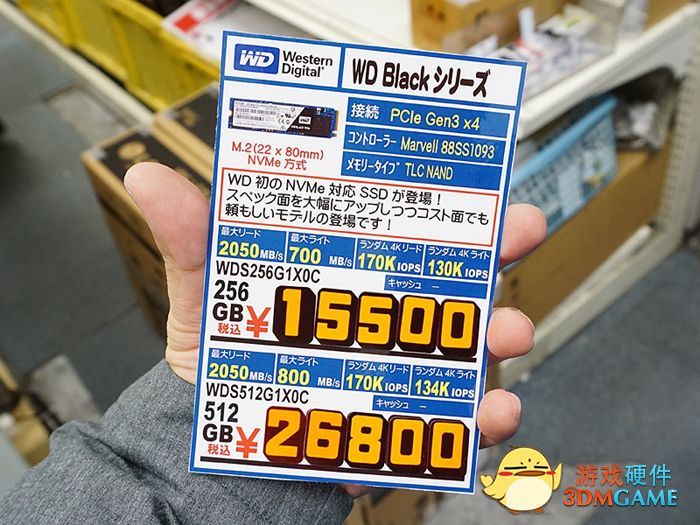 西部数据在CES 2017上发布的WD Black PCIe SSD已经现身日本秋叶原市场,作为西部数据旗下首款以Black为名的M.2 PCIe SSD,与Black系列HDD一样以高性能为主要卖点,256GB版售价15500日元(折合人民币933元),512GB售价26800日元(折合人民币1614元)。