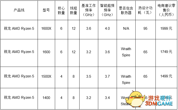 锐龙 AMD Ryzen 5 处理器和平台上市情况