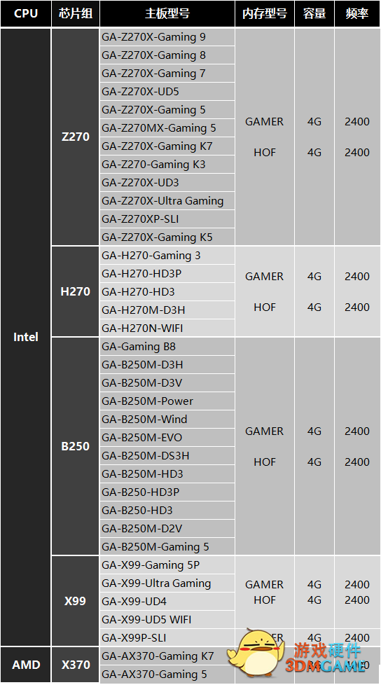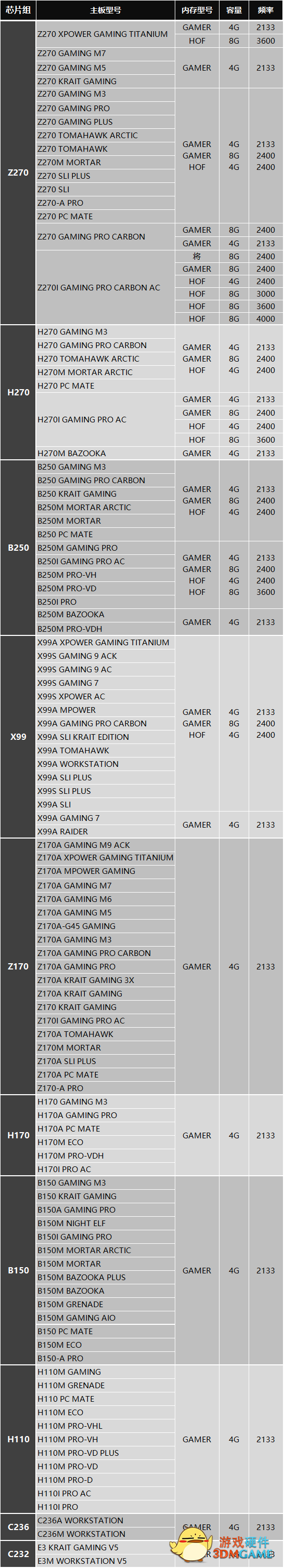 排除网站维护和认证时间较早等因素,以上信息基本涵盖了目前所有经过华硕、微星和技嘉官方认证,能够完美兼容影驰HOF、GAMER、将系列内存的主板型号,汇总一览已上传网盘,有需要的小伙伴请自取。