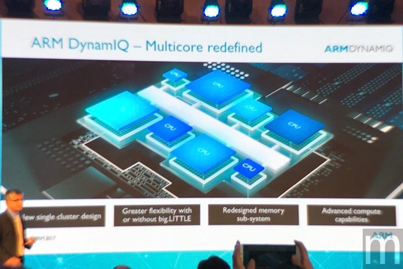 为了对应更细腻的运算需求,ARM此次提出的DynamIQ技术将可在单一丛集中布署8组运算核心,同时每组核心可任意配置不同运算性能,例如可配置“1+3”或“1+7”的核心配置模式,让单一丛集可同时实现大核心运算性能,以及小核心细腻功耗运作表现,甚至可指定特定核心负责人工智能技术应用的前期运算。