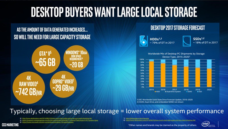 针对数据中心、企业端应用需求推出Optane品牌首款SSD DC P4800X之后,Intel也宣布正式推出面向一般消费市场的Optane品牌内存M.2 2280,并且区分16GB与32GB两种规格。不过,由于Optane内存必须在处理器、主板规格相互配合,因此必须采用Intel第七代Core i系列处理器,以及采用新版Intel芯片组的主板。