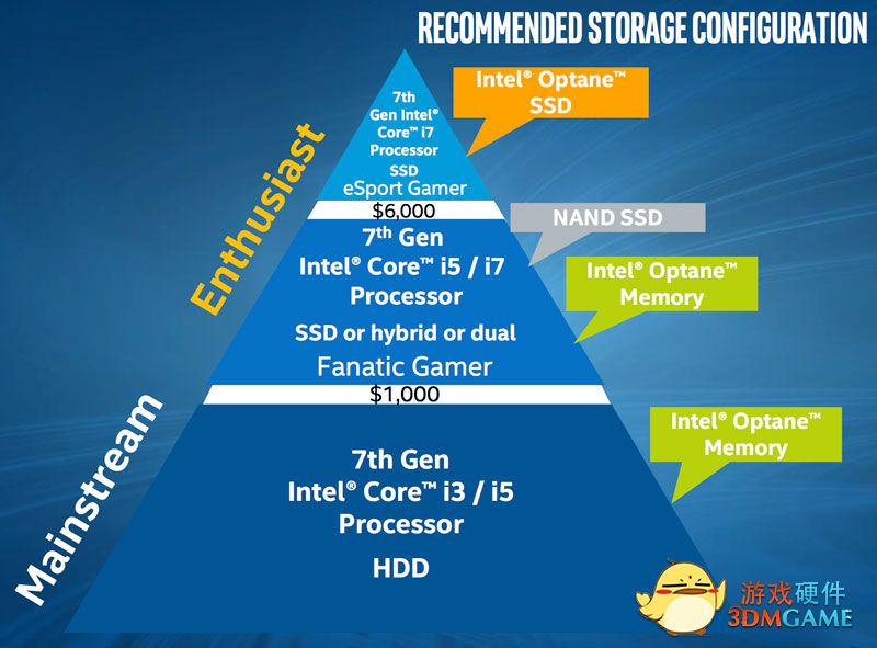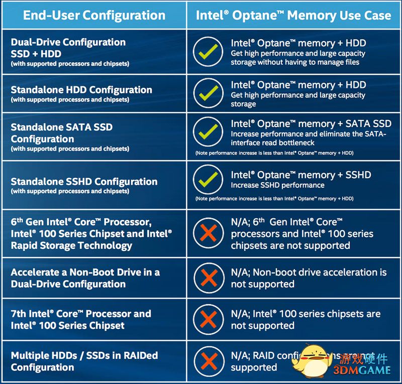 Intel傲腾缓存可以搭配独立的HDD机械硬盘、SATA SSD固态硬盘、SSHD混合硬盘,也可以辅助SSD+HDD组合中的HDD。