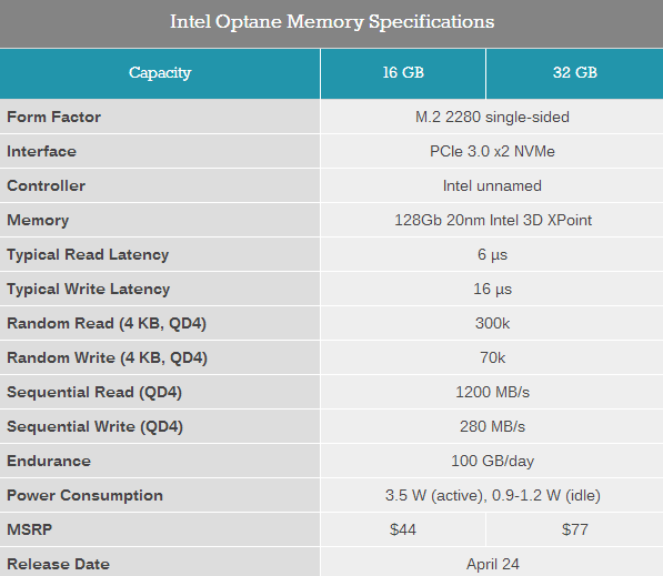 它采用了M.2 2280单面规格设计,搭载一颗或两颗单Die封装的3D XPoint芯片,20nm工艺制造,总容量提供16GB、32GB两种。