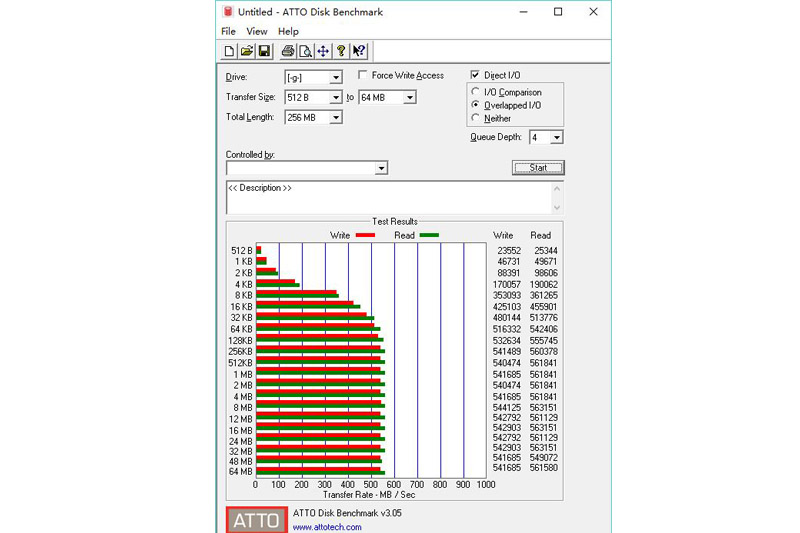 ATTO Disk Benchmark是一款优秀且免费的磁盘基准测试软件,支持对稳定性/突发性传输速率进行读写测试,适用于常规硬盘、RAID、USB闪存盘、移动存储卡等产品的读写性能测试。相比CrystalDiskMark测试,根据文件大小不同来测试读写速度的ATTO Disk Benchmark成绩更能表现实际应用中的速度。