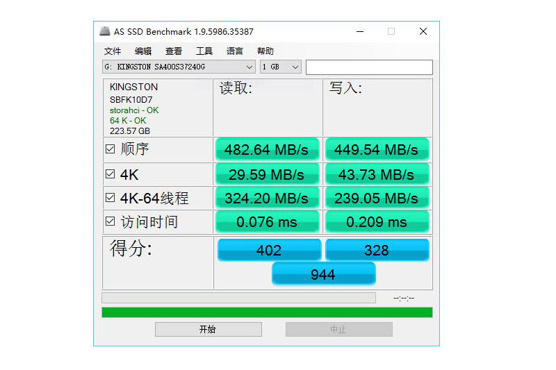 当然笔者前面说到了一些黑科技,但还是感觉可望而不可及,没有实际概念。不过是骡子是马拉出来跑跑就行了,接下来我们就使用了群联S11主控的金士顿A400测试一番,下面进入实测环节。