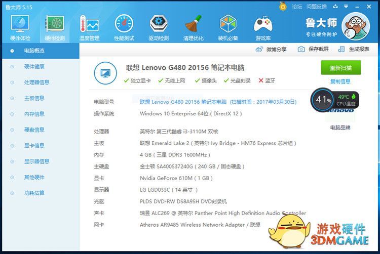 这台联想G480笔记本电脑在四年前也算是当时准主流的配置了,22nm 的IVB核心拥有2.4GHz的主频,标配DDR3L-1600 4GB的内存,现在跑Win10的话算是基本合格,但是频繁缓存硬盘是肯定的了。所以对于这款本子的升级方案来说,换掉老旧的机械硬盘是必须的。