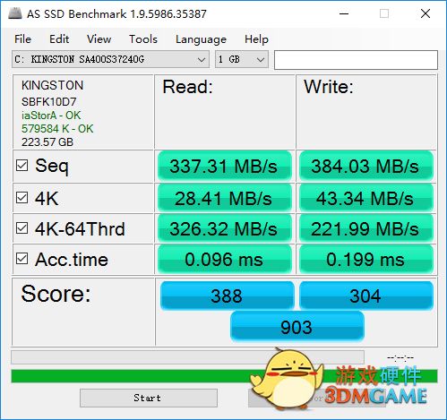 AS SSD Benchmark测试老笔记本电脑中A400 SSD的性能